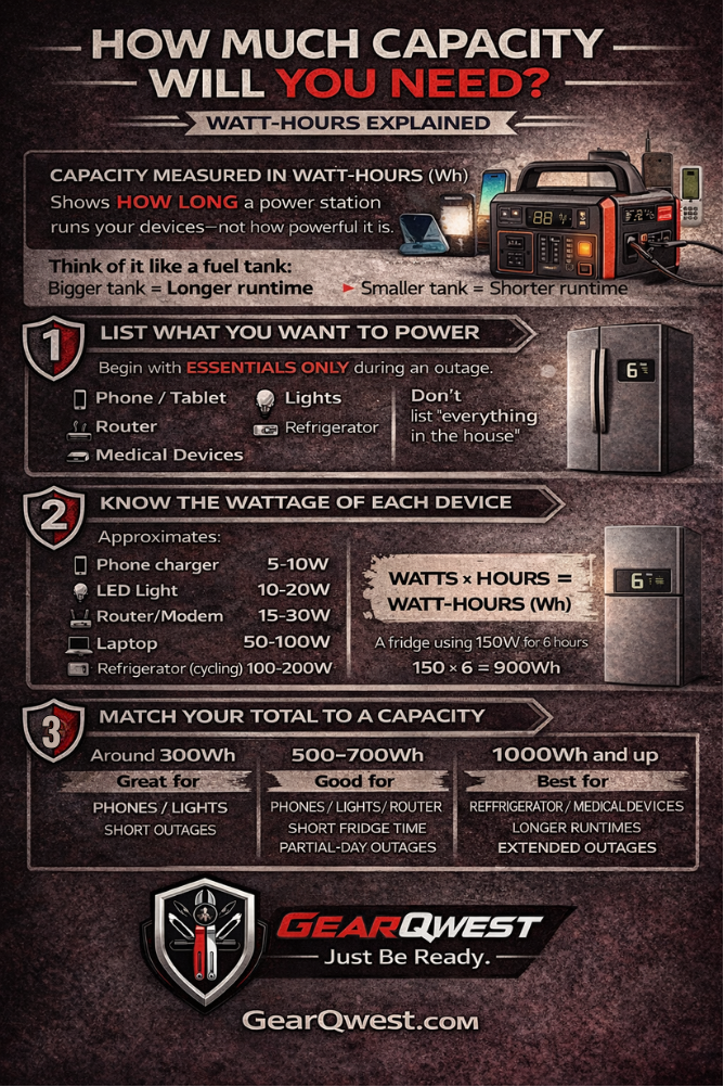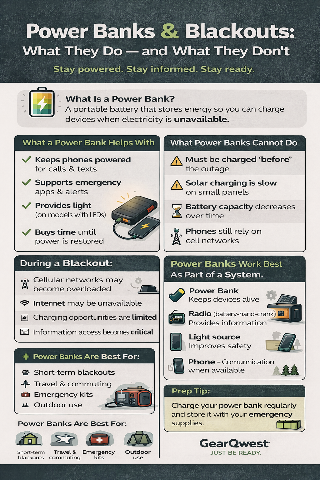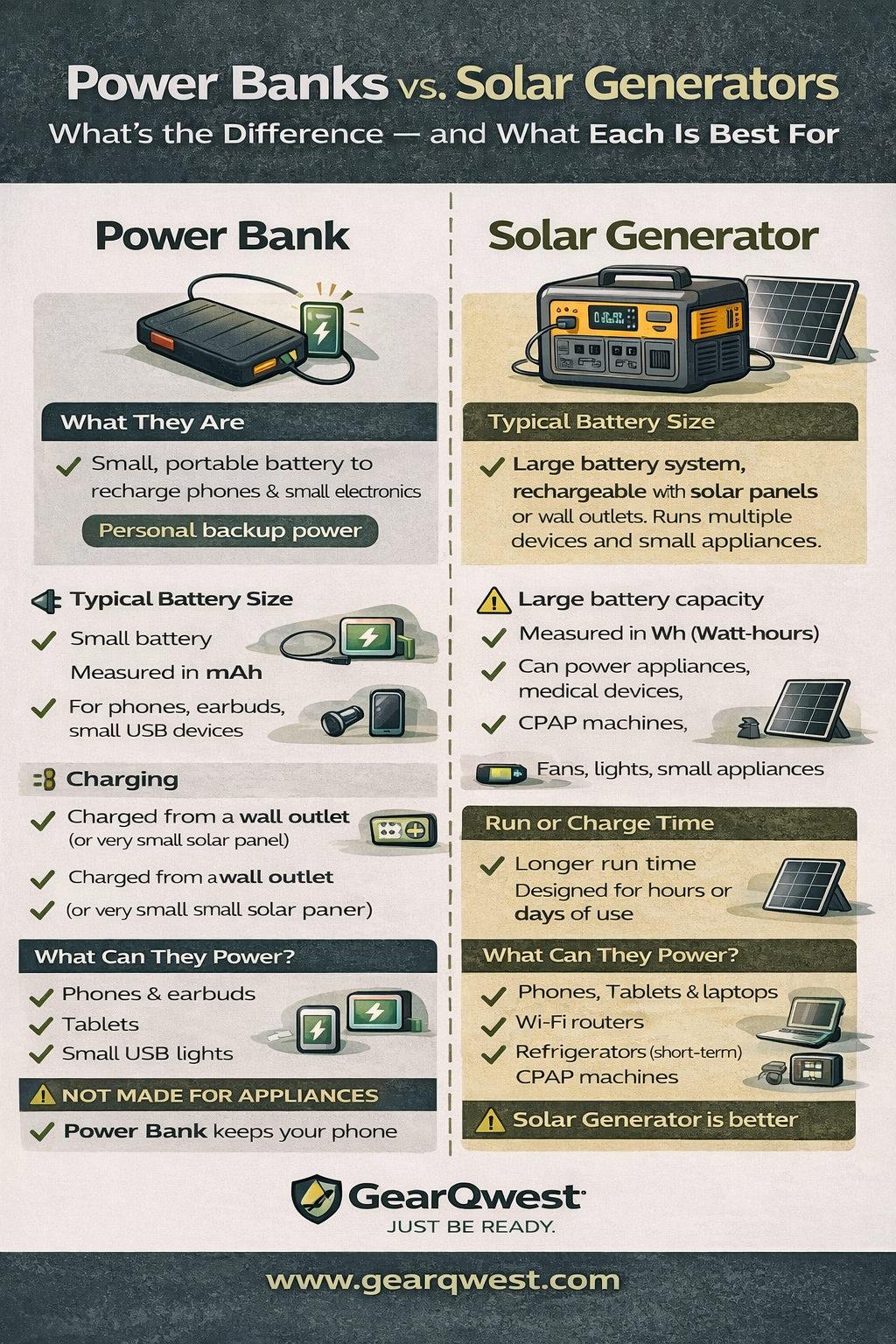 Power is essential during disruptions. It is what keeps phones working, medical devices running, food from spoiling, and homes safer when normal systems fail. When the grid goes down, access to power quickly becomes the difference between staying informed and being cut off, between short inconvenience and extended hardship. This section walks you through backup power step by step — helping you understand solar generators, how much capacity you actually need, how to choose the right setup, and where power banks fit when outages last longer than
